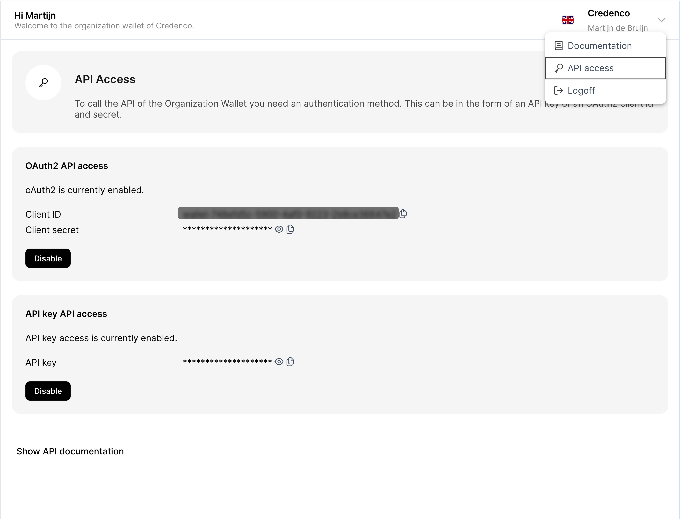 To be able to access the API, you need to authenticate with the Business Wallet API. Two authentication methods are available:
