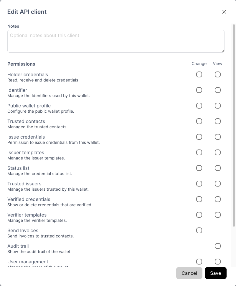 Each client ID has its own set of roles, an expiry date, and optional notes — so you can grant different integrating parties exactly the access they need, for as long as they need it.